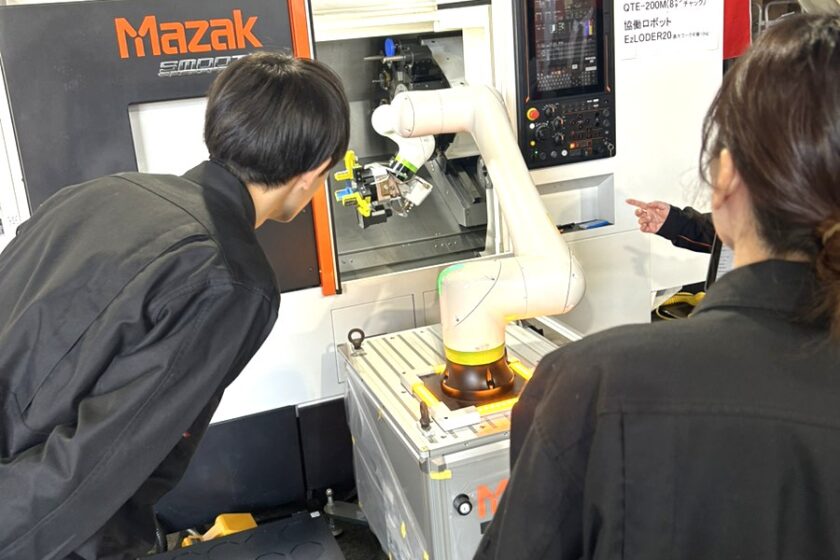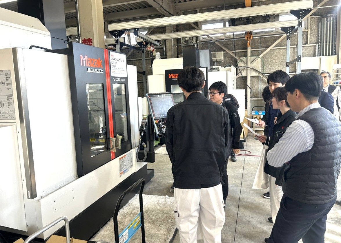 また奥ではマザックの加工デモが行われており、実際に加工を見ることができました。普段扱う材料とは違う加工の様子や刃物形状の違いなど、新しい発見もありました。